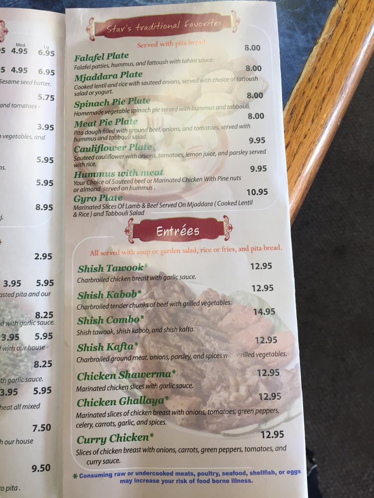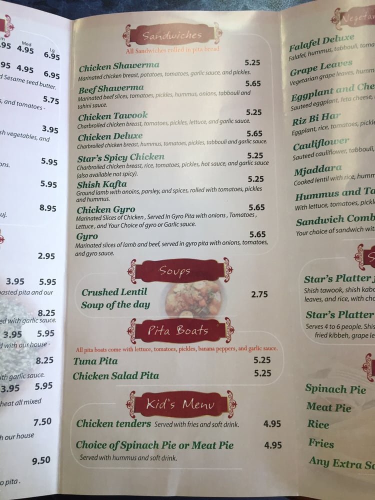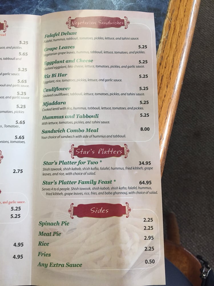 Star's Cafe, a Middle Eastern gem located in Ann Arbor, MI, offers a delicious array of Mediterranean dishes that are sure to tantalize your taste buds. With options for breakfast, brunch, and lunch, this café is perfect for a quick bite or a leisurely meal. Customers rave about the crushed lentil soup, chicken gyro, falafel, and hummus. The friendly service and cozy atmosphere make dining here a delightful experience. Don't miss out on their flavorful chicken sharwarma or the baba ghannouj. With a variety of vegan options and accommodating staff, Star's Cafe is a must-visit spot for anyone craving authentic Middle Eastern cuisine. Enjoy your meal in the casual yet classy setting or opt for takeout or delivery for a taste of Mediterranean goodness at home.